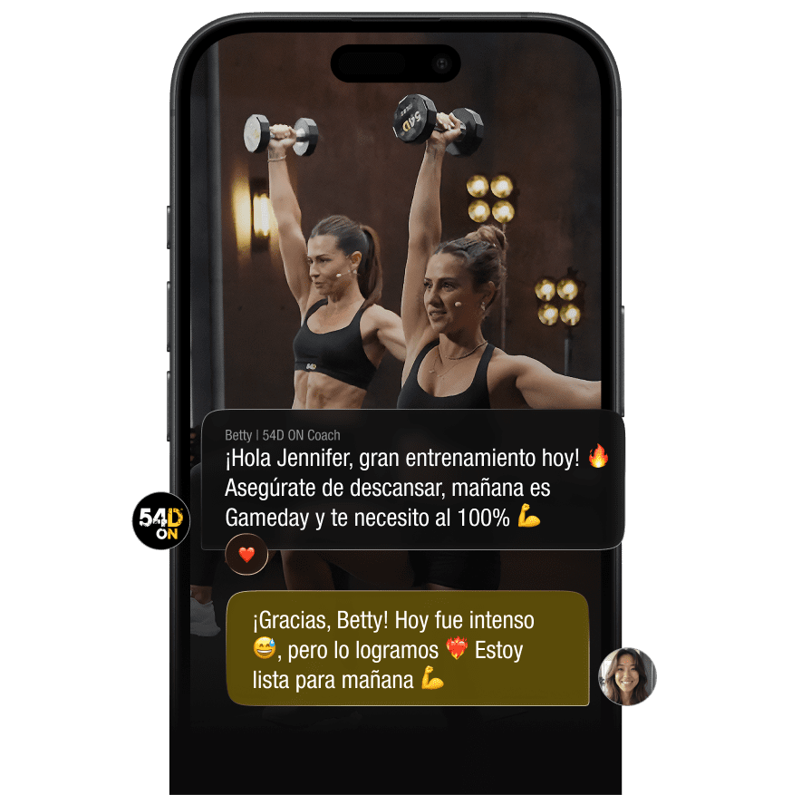 54D ON es la única suscripción premium que te da acceso a una comunidad global comprometida. Incluye acceso ilimitado a un catálogo de programas digitales, diseñados según tus objetivos, con entrenamientos estructurados, guías nutricionales y un sistema que te hace responsable de tus resultados. Aquí, no solo entrenas: evolucionas acompañado por coaches en vivo, protocolos de nutrición y miles de personas que, como tú, buscan un cambio real.